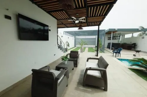 Casa Bita Morales CASA 101 ofrece habitaciones familiares y un espacio diseñado para el descanso en familia, complementado con una piscina al aire libre que invita a refrescarse durante los días cálidos. El alojamiento cuenta también con bar integrado, estacionamiento gratuito y acceso directo a su área de playa privada, ideal para disfrutar del mar sin salir de las instalaciones.